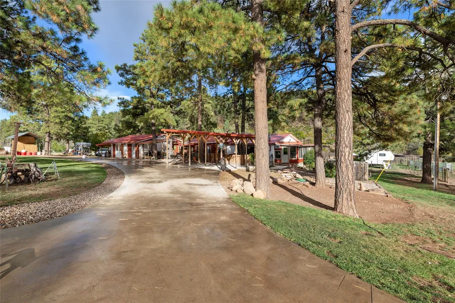 Secluded, private, and full of charm, this 20-acre property was the original homestead of the famed Mathieson Ranch, which originally encompassed several thousand acres. Nestled at the entrance to a canyon in the foothills of the Sangre de Cristo Mountains, it is less than 15 minutes from the historic town of Las Vegas, roughly an hour from Santa Fe, two hours from Albuquerque, and four hours from Amarillo. The home was extensively remodeled in 2015-2016 to feature new wood floors, modern baths, a well-equipped cook’s kitchen with new appliances, and an inviting living room with tongue-and-groove ceilings. All windows and the roof were recently replaced. The property offers impressive horse facilities, including an arena with excellent footing, a small training pen, and a freestyle walker. The entire property—which boasts six pastures with non-climb horse fencing—is fenced and cross-fenced. The property also includes solar panels along with 22,000 kilowatt-hours banked at Mora–San Miguel Electric Cooperative.
