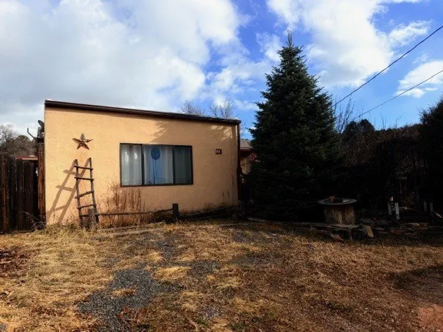 If you are looking for peace and quiet, lovely views that include sunsets, come and look at this house! Enjoy the joys of small-town life in this charmer! Situated east of the center of Pecos and the Pecos River in East Pecos, there are mountain views from the property, and the surrounding properties have beautiful rock formations. Two bedroom, one bath, large living room which is a later addition to the main house. The main house has a second living area with dining area. The country chicken sink is the focal point of the kitchen. The older/smaller living area could potentially be turned into a third bedroom. New laminate flooring in the whole house, new toilet, and new hot water in 2022-23. Partially enclosed front porch. A large building in the back is divided into two spaces, a studio on one side and storage on the other. It has electricity, and heating on the right (larger) side. The property is completely fenced, with an apple tree, dwarf crabapple, and grape vines.