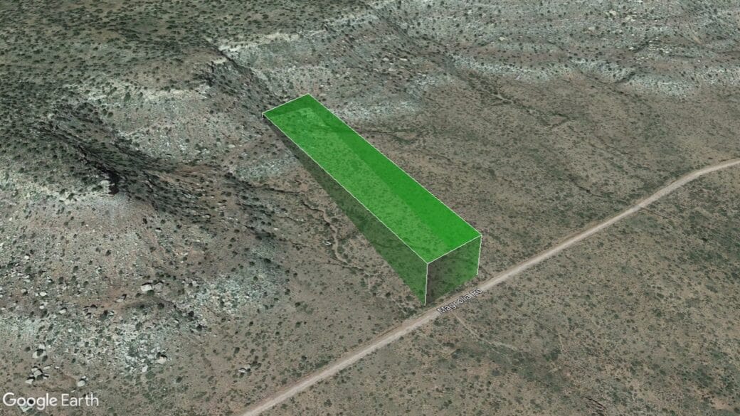 Coordinates: NW corner: 35.3496, -104.3287 NE corner: 35.3502, -104.3281 SW corner: 35.3467, -104.3266 (ROAD) SE corner: 35.3471, -104.326 (ROAD)