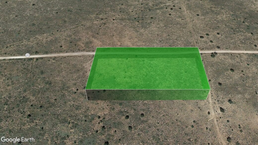 Coordinates: NW corner: 35.3069, -104.4333 (ROAD) NE corner: 35.3069, -104.4312 (ROAD) SW corner: 35.306, -104.4334 SE corner: 35.306, -104.4312