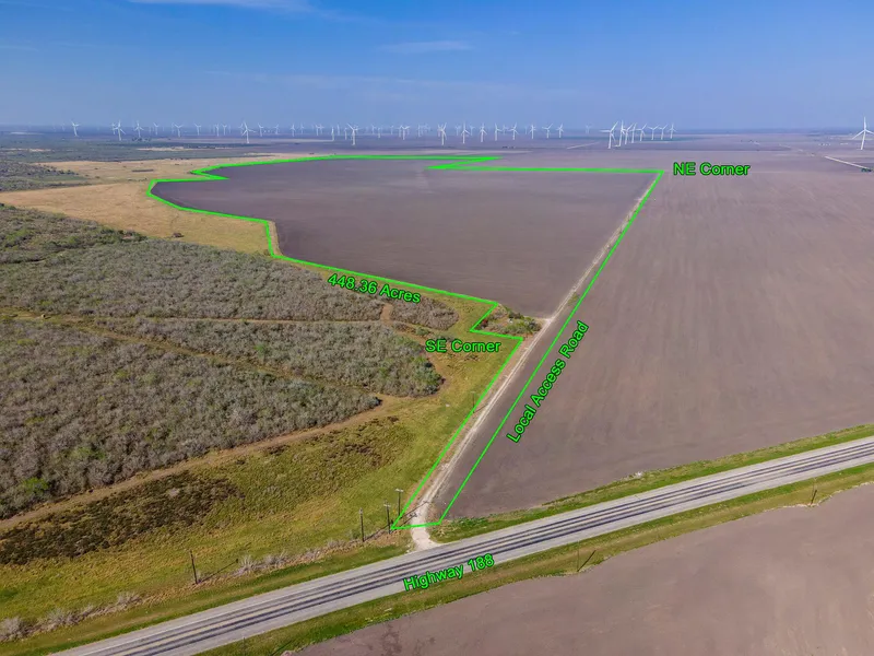 448.5 acres of San Patricio County, TX Farmland. Solid production history of corn, grain, and cotton. Appears well drained, Easy access. No pipelines, wind towers, or oil field. Electrical powerlines on property. Solid famer with a cash lease in place now. Farmland is one of the most popular investments in the country today! Inventory is low and moves quickly. Very hard to find a tract of this size in today's market.
