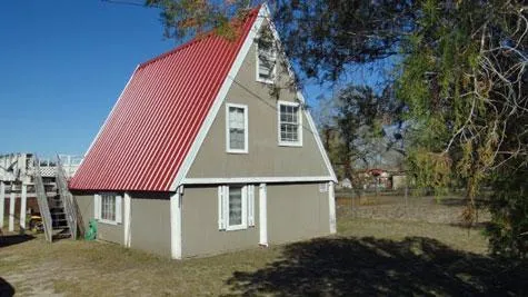 Located a block from Mathis Lake, this gray A-frame with red roof is just the spot to enjoy the laid back atmosphere of this area. The ground floor is currently being used as a large storage/utility. The second story accessed by sturdy aluminum stairs, offers the living, kitchen and bathroom along with a large deck. The deck is the perfect spot to relax and enjoy a view of the Lake. Access to the third level is by way of "pull down" stairs. This area has just enough room for a couple of beds. Fenced yard great for children, pets and boat parking! Possible Owner Financing!!