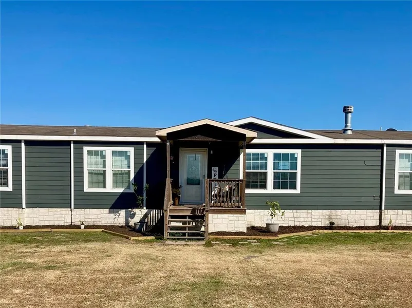 Welcome to this country retreat on 5.484 acres of unrestricted land. Minutes away from the city life. Move-in Ready. Double wide manufactured home. This home has a open floor plan with split bedrooms, 2 living spaces, a separate laundry, and office. Walk in Pantry. Beautiful kitchen with plenty of room for everyone at the 8 ft island. Great for entertaining. Primary room has walk in closet, double sinks and spa tub. Enjoy the sunsets. Bring the animals, there is room for all. RV hook up does not convey.
