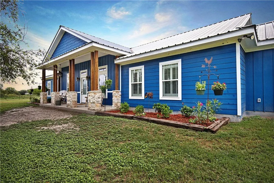 Experience country living with modern touches in this beautiful Sinton home, perfectly situated on 4.58 acres with room to grow. Step inside to an inviting open floor plan where rustic charm meets thoughtful design. The kitchen is a chef's dream featuring rich maple cabinets, granite countertops, two pantries, a spacious island with storage and seating, and a gas range-perfect for gatherings and everyday living. The living space is highlighted by stained concrete floors and a striking ceiling beam that spans the entire room, adding to the rustic motif. A split-bedroom layout offers privacy, with two bedrooms on each side of the home. Both the primary suite and guest suite feature private baths, while the primary boasts a spa-like shower with dual shower heads, a built-in seat, double vanities, and dual walk-in closets. Additional features include a large utility room with abundant storag...