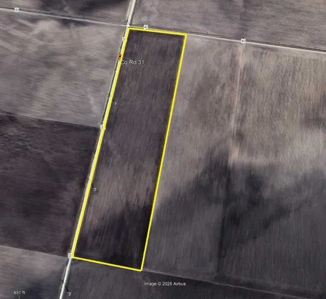 20 acres at the southeast corner of CR 1839 and CR 1400. Also known as CR 31 and CR 40 on Google Maps. +\- 300 feet of frontage along CR 40 and +\- 2,635 feet along CR 31 Currently used as farmland with an ag lease. A large highline and easement is located on the property with the frontage along CR 31. A pipeline easement also crosses the property near the southern part of the tract. CR 31 is not paved. A well will need to drilled for water. A smaller electric line is located on the other side of CR 31 for the length of the property. An additional line runs along the frontage of CR 40. Buyer will need to confirm availabilty. Good location for an acreage home site. The adjoining 20 acre tract to the east is available as well.