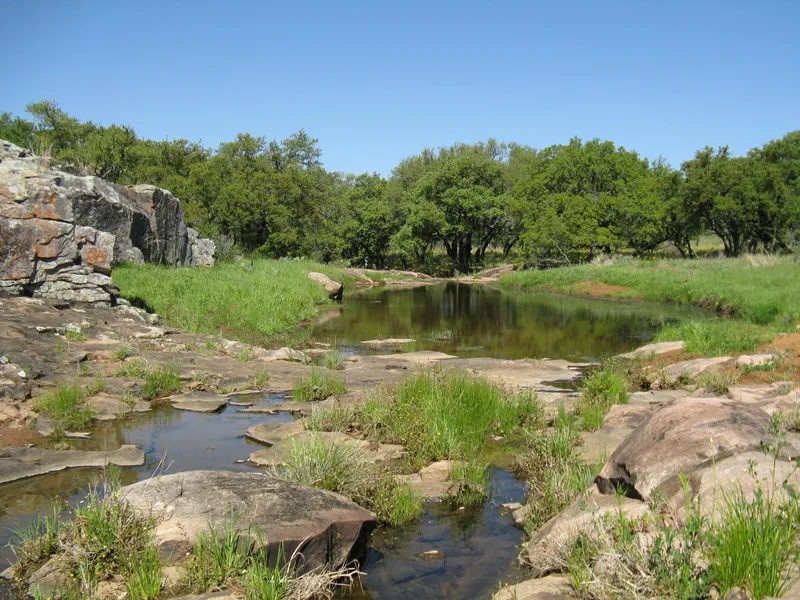 Land consists of gently rolling upland native pasture. Tree cover consists mostly of a mixture of oak, elm and mesquite trees scattered over sandy loam soils. Deer Creek meanders through the tract among numerous scenic granite outcroppings, providing seasonal water flows. The property is recently partitioned out of a larger ownership and is not fenced along 5,120 feet of the western boundary.
