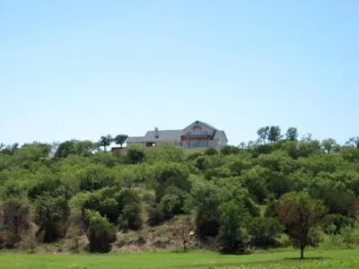The “Ranch House” was completed in April 2006. It sits on a high point that overlooks the lakes and river bottom area where it is very common to see numerous deer and turkey feeding in the valley below. The 3/3 two-story house has about 5100 sq. ft. under roof with about 3500 sq. ft. of airconditioned living area. Included under roof is a spacious 2-vehicle garage adjoined by a breezeway and covered porches. The home is “move-in ready”; completely furnished and decorated with new “top-of-the-line” products. The lower level has 2 bedrooms, a spacious and open family room/dining room/kitchen, and a large game room with a wet-bar and pool table. The floors are covered with porcelain tile and the counter tops are granite. The upper level is a very spacious Master Suite with a sitting room, a larger bathroom with a Jacuzzi tub & walk-in shower with multiple showerheads, a huge walkin closet and large bedroom. The flooring is Alder wood. The bedroom opens to a large wooden deck/balcony that overlooks the entire ranch and the beautiful in-ground swimming pool with a native stone waterfall.
