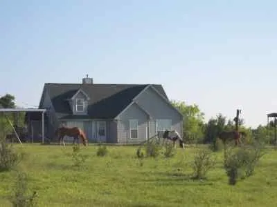 Another very nice feature about this ranch is the lovely 3 bedroom, 2 bath home perched upon a high area with a great view. The exterior of the home is concrete Hardy board. It has approximately 1200 sq. ft. of living space with propane gas central heating and electricity for cooling. The living room has vaulted ceilings with 2 exposed wooden beams and a beautiful white stone fireplace with a wooden man-tle. The master bedroom is spacious with its adjoining master bath that includes a handicapped tiled shower and vanity. The living room, kitchen and laundry rooms have tiled floors with carpet in the rest of the house. The kitchen and both bath-rooms have tiled counter tops. The appliances and most of the house hold furniture will remain with the house.