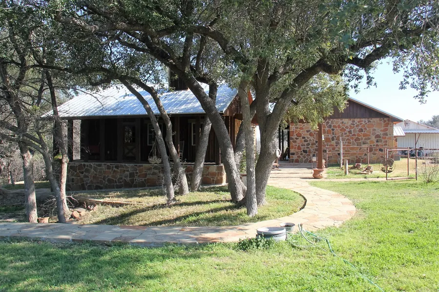 A unique property pleasingly designed for folks who want to down-size but still want style and enjoy country living. About two-thirds of this property is very productive cultivated land and the remaining one-third is native pasture that slopes downward to a tree-lined wet-weather creek. The home and adjacent guest quarters are nestled among large oak trees on the high side of the creek that runs along the east side of the property. According to CAD, the combined living space of the main house and guest quarters is about 2100 sf. In addition, a trellised breezeway joins the covered porches running the lengths of both houses which allows the outdoors to be claimed as the best living space to enjoy Spring breezes and Summer nights. The exteriors of both the main house and guest quarters are attractively constructed with a combination of native sandstone and cedar siding.