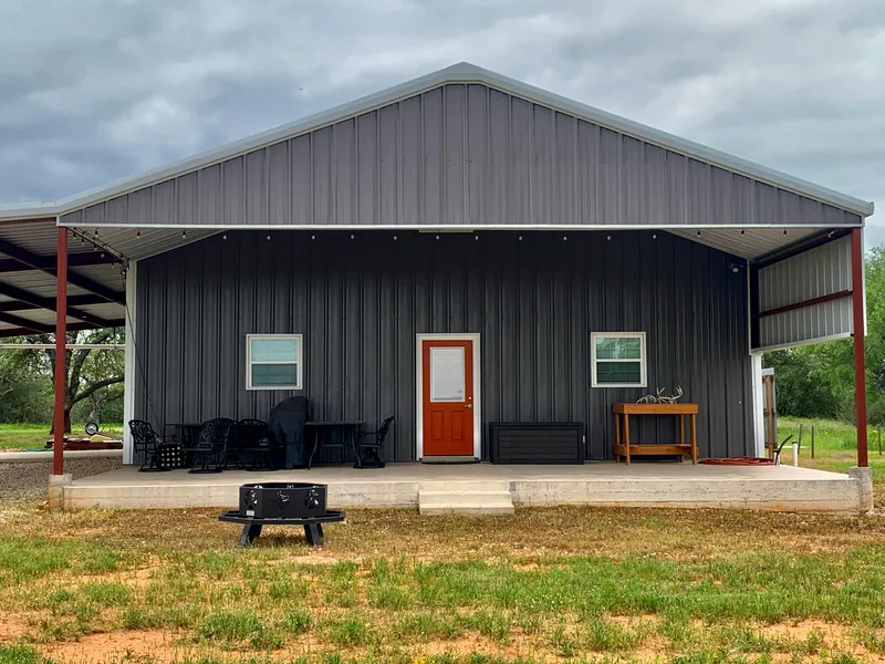 Fully furnished barndominium sits near the SW corner of the property and takes advantage of the spectacular views and overlooks the Colorado River valley. Barndo was built in 2022 and majority of furnishings available to convey including gun safe, furniture and household items. Interior is open concept, high ceilings, central heat/air & electric console fireplace. Bath features tiled shower and single sink vanity. Bedroom is large with great closet space. Additional bonus room / sleeping area upstairs also. Spacious porch and patio areas, outdoor shower, rain water collectio...