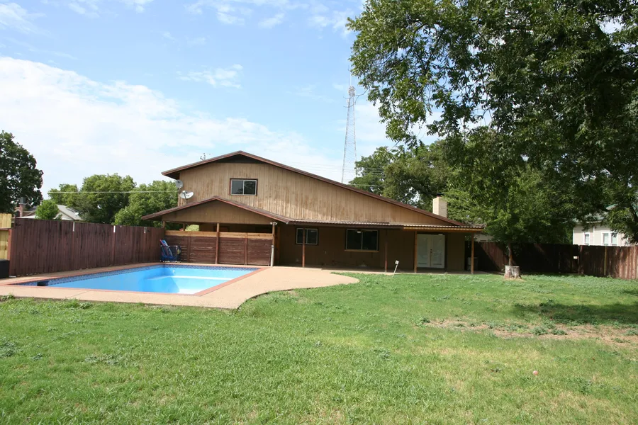 The huge back yard is enclosed with a wooden privacy fence around most of it. There is an in-ground swimming pool with a new pump that is fully functional and ready for those back yard outings with family and friends. There is a lot of room for additional parking for an RV or trailers.