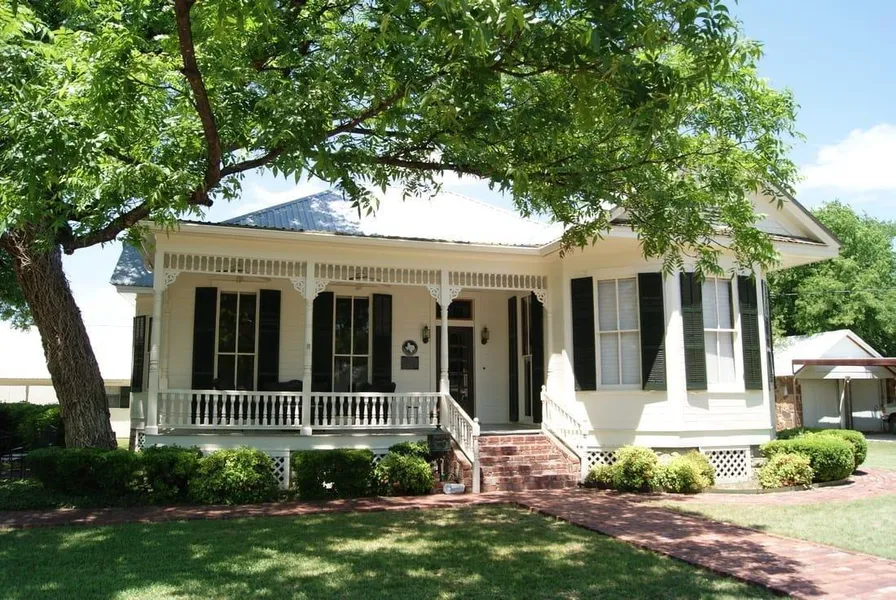 This beautiful historic home is located in a historic neighborhood in San Saba, Texas. The home was built in 1905 and was awarded a historical marker in 2005. The home has 3 bedrooms, sitting room off the master, 3 full baths, a living room, dining room, kitchen, breakfast room, and office. Beautiful floor to ceiling windows are encased by dark green shutters. The home features Queen Anne styling, including spindle work, turned posts and hipped roof with cross gables. The master bath has a jacuzzi tub, large walk-in shower, and marble countertop. There is a laundry room with large sink and freezer and a large storage room attached to the carport. A large patio area in the back yard is a great place for private gatherings. The front steps and sidewalks are brick pavers of the period. Great location, close to schools and walking distance to downtown. Call for an appointment today!