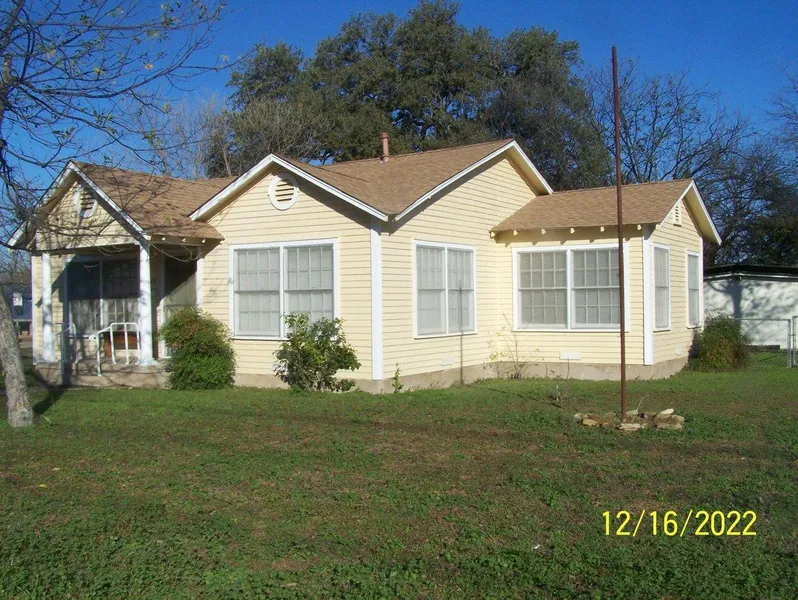 This 2-bedroom, 2 full bathroom home is located on Commerce Street in San Saba, Texas, close to the school and walking distance from downtown! The main house is 1,188 square feet and the detached garage has a studio apartment with 500 square feet of living area. This newly remodeled garage apartment now has a shop below and there is an additional storage building in the backyard. The home has been recently painted and is on a very nice 1/3-acre corner lot. The kitchen opens into the dining area which has a cozy dining nook and there is a spacious living room adjoining. There are 2 nice-sized bedrooms, one is 12'x14' with a walk-in closet; the second bedroom is 12'x12'. The roof was replaced in 2015 and the electric range and water heater in 2021. The appliances are negotiable. The Bungalow style home built in 1937 is very inviting, with pecan trees and a beautiful oak tree in the backyard. This is a very nice property in a great location with the option to have rental property as well. Call for an appointment today!