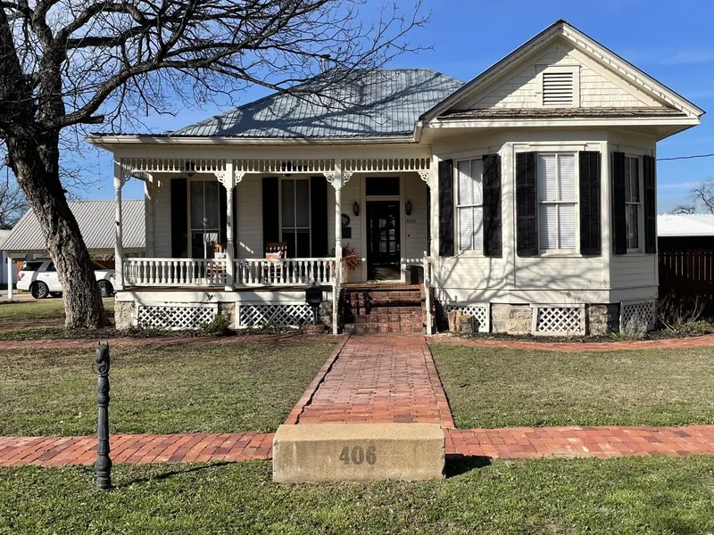 *** PRICE REDUCTION*** This beautiful historic home is located in a historic neighborhood in San Saba, Texas. The home was built in 1905 and was awarded a historical marker in 2005. The interior of the home was recently painted and has 3 bedrooms, sitting room off the master, 3 full baths, adjoining living and dining room with a wood burning stove, kitchen, breakfast room, and office. Beautiful floor to ceiling windows are encased by black shutters. The home features Queen Anne styling, including spindle work, turned posts and hipped roof with cross gables. The master bath has a jacuzzi tub, large walk-in shower, and marble countertop. There is a laundry room with a large sink and large storage room attached to the carport. A large patio area in the back yard with a new privacy fence is a great place for private gatherings. The front steps and sidewalks are brick pavers of the period. Gr...
