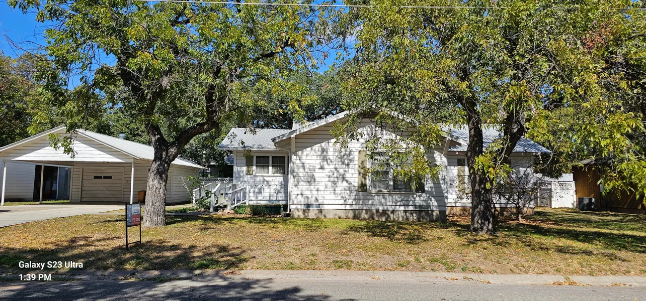 DESCRIPTION: Charming vintage white frame home built using pier & beam construction in the 1950s includes 3 bedrooms and 2 full bathrooms in the approximately 1527 sf floor plan. The metal roof and gutters were replaced about 18 years ago. The oversized dine-in kitchen offers an unusually large amount of counter space and storage. Kitchen refrigerator and range are included. Beautiful original oak floors, a small library tucked behind antique French doors, ceiling fans, central heat and a/c, an unusual number of storage closets all add to the comfort level. Storm windows increase the energy efficiency of the home. Spacious wooden decks accessed by several exterior doors extend the living area outdoors. The front yard is shaded by large pecan trees, the backyard and deck is shaded by an enormous ancient live oak tree. The small backyard is privacy fenced. A detached double carport, single car enclosed garage with storage area completes the package. The market value of this home is appraised by CAD for $206,620 but is being sold as is at the reduced price given above to allow for repairs and buyer modifications.