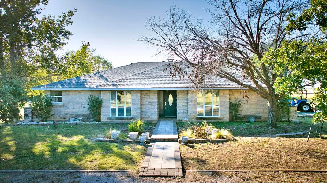 A beautiful white stone home established along a wet weather creek and invites you in with welcoming huge oak trees. Very spacious 2,396 square feet home with 3 bedrooms, 2 baths and presents a ranch style vibe on approximately 6.89 acres. Easy access, just a short drive from the town of San Saba. All electric, central heat and air (new in 2022), composite roof (new in 2023), and complimented with a bonus room, family room, dining room, foyer, laundry room, sunroom, 2-car carport, in-ground pool with landscaping, hot tub, fireplace, lots of built-ins, horse barn and two dog runs, co-op water as well as well water for yard. Definitely a must see!