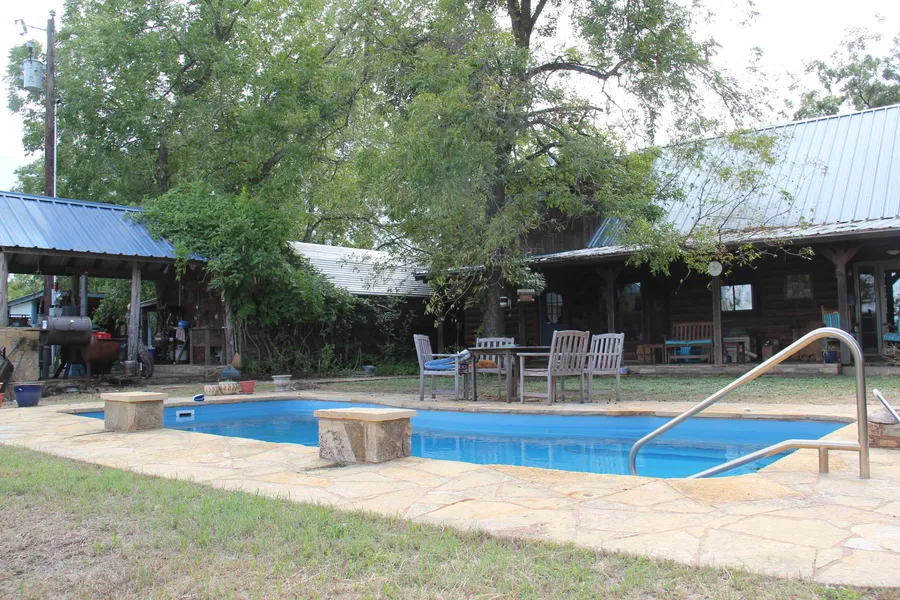 Beautiful custom built log home with 114.6 feet of frontage on the Colorado River has all the amenities for the perfect place to raise a family and retire. The home was built in 2005 and enlarged in 2012 to include approx. 2500 sf of living space. The wide porches across the front and rear of the house expand the home another 560 sf. The floor plan downstairs includes 2 living areas, dining room, and kitchen with breakfast nook, large laundry room, two baths or powder rooms, one bedroom with full bath attached. Two more bedrooms, a full bath and a huge bonus room occupy the second story. Extras & Details: Natural stone wood-burning fireplace, bay window in breakfast nook, hickory cabinets and crown molding, hickory or pecan laminate floors, Silestone counters in kitchen and abundant cabinet storage, extra storage space under upstairs dormers, Villeroy & Boch tile used in bathrooms, cedar lined closets and a burglar alarm system. In addition to the excellent natural insulation factor provided by the log walls and the use of energy efficient windows and ceiling fans, the home is zoned with 2 HVAC units with separate thermostats for comfort as well as efficiency. The house is all electric with an electric bill averaging less than $250/month. The metal roof was replaced in 2012. Enjoy outdoor living in the deep shade of the huge back porch cooled by ceiling fans or in the cool, clear water of the 27x12 fiberglass salt water swimming pool surrounded by native flagstone. Use the covered outdoor kitchen to prepare summer meals and keep the heat out of the house. A separate man cave/she shed with a/c and bathroom could make a perfect guest house, shop or project room. All the improvements are built on the high end of the land above the flood zone. There also is a 10x16 storage shed and a small fenced area used for a vegetable garden. The lawn slopes gently downward from the house to the river. The river is wide and deep with good fishing from the bank or by boat, not to mention access to the river for kayaking, canoeing, etc. Theres a whole bunch of WOW packed into this property. Dont miss out!