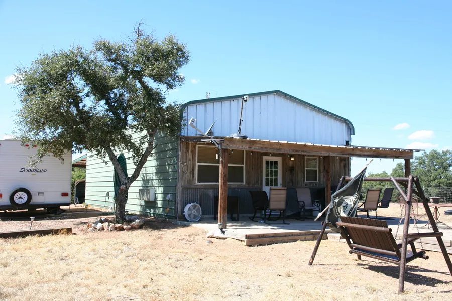 This is a nice Hill Country property that is just right for weekend retreats or to build your own country home. There is a metal cabin that is about 24 x 40. It sits on a 24 x 48 concrete slab that provides area for a large 8 x 24 covered porch. The cabin is finished inside with 2 bedrooms, 1 bathroom, a family room and small kitchen. There is a 20x30 carport and a 10x30 storage/shop. The cabin has a fenced enclosure to keep livestock at bay. A 300 gallon septic tank system serves the house