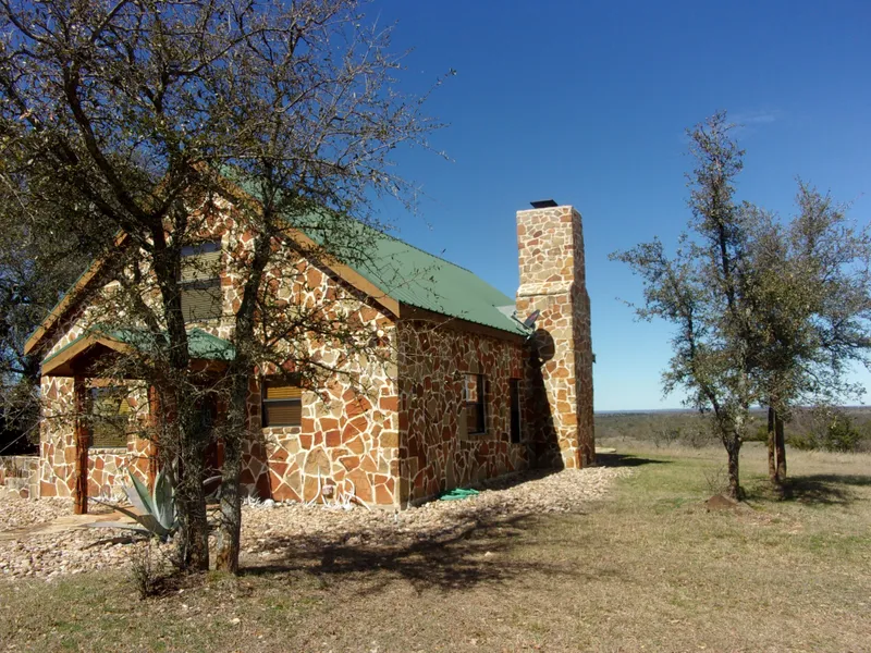 Sit on your covered back porch off this lovely designed rock cabin and enjoy the beautiful views of the Texas Hill Country.