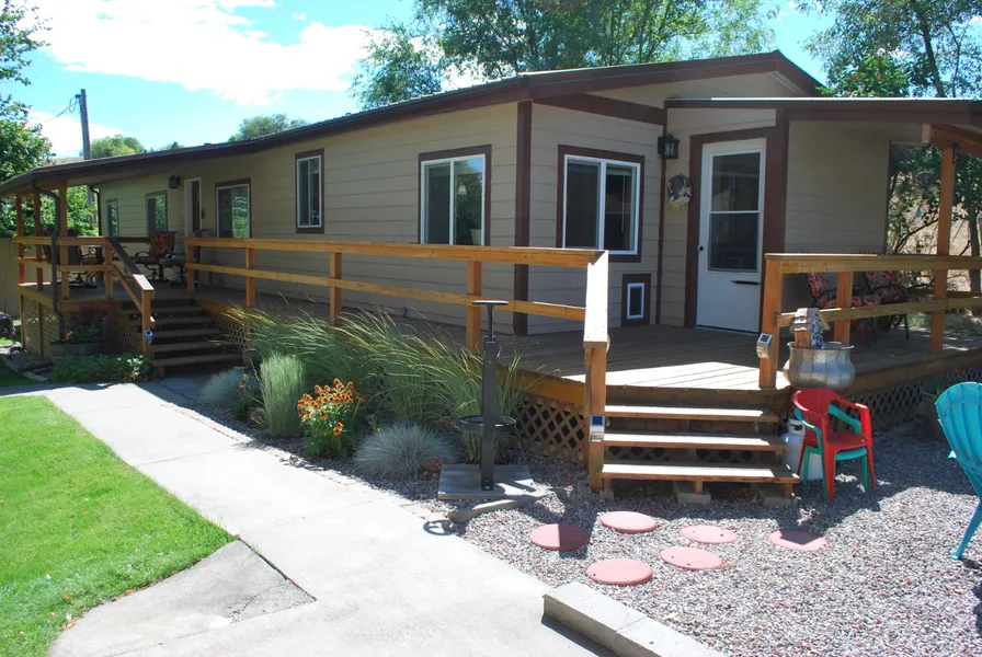 Well maintained 3 bedroom, 2 bathroom manufactured home. Features a large 2 car garage, RV septic dump, and plenty of extra parking. The yard is landscaped with mature trees and multiple flower beds. There is a large covered deck overlooking the immaculate yard. Nice, private setting. The house has a master suite with a large bathroom and walk-in closet. Spacious floor plan with a formal dining room, family room, and living room. Property will require in house financing or cash. NOT on a permanent foundation or de titled. Many updates have been done the last few years: flooring, interior, and exterior painting, roof, gutters added, appliances. Currently, pay $70/month for water and sewer. The home has an electric furnace and central air.