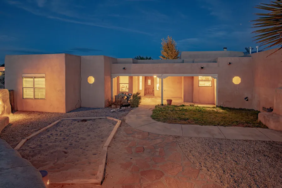 Absolutely gorgeous, single story, 4 bedroom Corrales custom home built by Steve Nakamura with RV Garage! Updated Kitchen offers granite counter tops, lots of cabinet space and a big pantry. Enjoy the Mountain & City Views from the wall of windows in the Family Room which has a wood burning Kiva fireplace and stunning beam ceilings! The Owner's Suite has private access to the backyard, spa-like bath with a tub and a separate shower & double sinks! The Views are breathtaking. Very nice sized secondary bedrooms offer Views as well. Private backyard has covered & open patios, playground, hot tub and VIEWS!