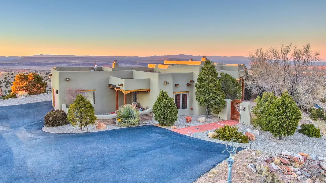 Placitas Pueblo Perfection! Exclusive Overlook subdivision w/dramatic east/west setting showcasing incredible natural light, world class vistas of the Rio Grande valley & mesas, Jemez & Cabezon mtns and the high desert hills that name the address. The summit of Placitas living inside & out adorned w/rich, authentic Santa Fe style & finishes. Built by master builder Ed Paschich and maintained w/huge pride of ownership with major updates/upgrades. One level excellence featuring attached guest qrtrs, mltple living & dining areas, real chef's kitchen and THEE master ste that will take your breath away. Outside boasts front & back private crtyrds, Kiva fp, cowboy kitchen, hot tub & two water features- never ending views everywhere! Incredible hacienda w/great access to I-25, shopping and more