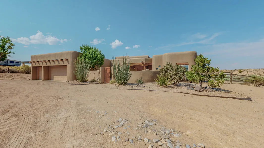 Under Contract Taking Backup Offers. Timeless NM Southwestern Custom Home that sits on an acre with views. This home offers two living areas, Pella windows, a fabulous kitchen with granite countertops. Three bedrooms with an additional room that is perfect for a home office, gym, or a nursery. Enjoy the sunsets on the Sandia's from a terrific natural & landscaped yard which includes a flagstone fire pit and patio area. Fresh paint, carpet recently installed in all bedrooms, natural stone flooring over Radiant heat throughout. A small stable in the back and plenty of room for an RV. Bring your toys, the pets, and even a horse if you'd like and don't forget the family so you can enjoy this move in ready home.