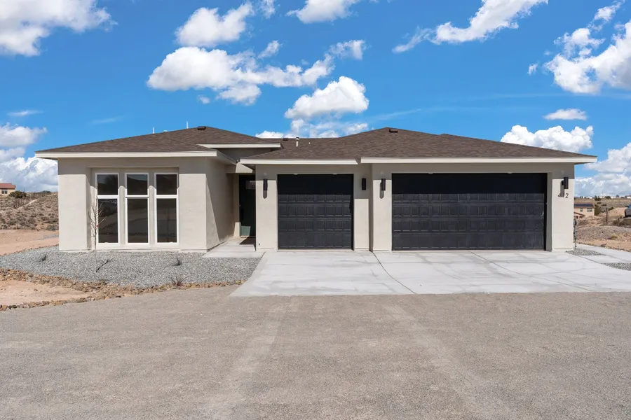 New Fellowship Home - 4 beds - 3 baths - 3 car garage - in Rio Rancho on 1.25 Acres!! Come tour this Modern Ranch that's not only chic but also upscale! Stylish cabinetry paired with quartz countertop & copper backsplash creates for a welcoming & classy space! Culinary enthusiasts will love the open kitchen with island for entertaining! Coffee or wine bar right off kitchen perfect for at home study. Bright living & dining space illuminated by natural light, bedrooms carpeted for comfort, & the HUGE primary bedroom boasts large walk-in closet, upscale shower, tub, double sinks in the ensuite bathroom. But wait there's more, this home offers a flex-suite with full kitchenette & a private entrance! This is your second living space, guest suite or at home office! Come see today!