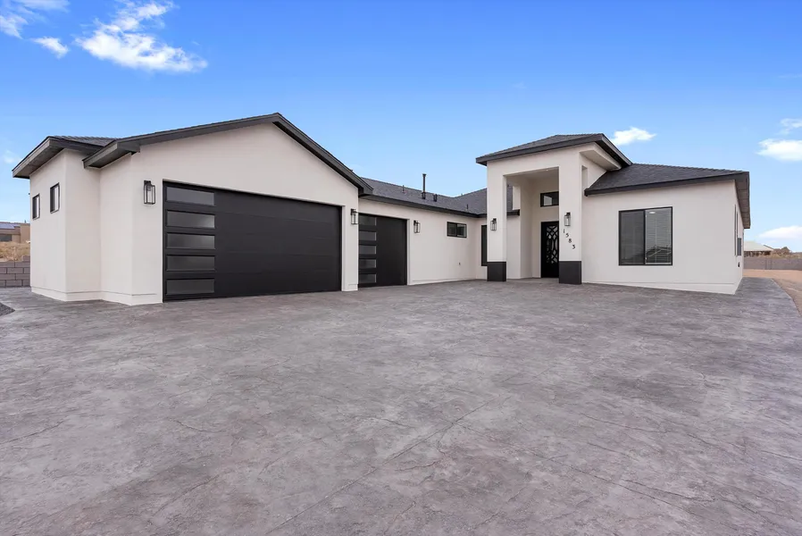 Welcome to this stunning custom new build in the heart of Rio Rancho, offering breathtaking mountain views and modern luxury. This move-in-ready single-family home spans 3,100 sq. ft. with five bedrooms and four bathrooms, designed for both comfort and style. Situated on a half-acre lot, the home features RV parking and backyard access, a beautifully xeriscaped front yard, a block wall entry with a sleek metal gate, and an eye-catching glass-and-steel front door that sets the tone for its contemporary design.Inside, the open-concept layout is enhanced by marble tile flooring, clean modern finishes, and a seamless flow to the outdoors through a large sliding door that leads to a custom stamped concrete patio. The gourmet kitchen is a chef's dream, boasting quartz countertops, a