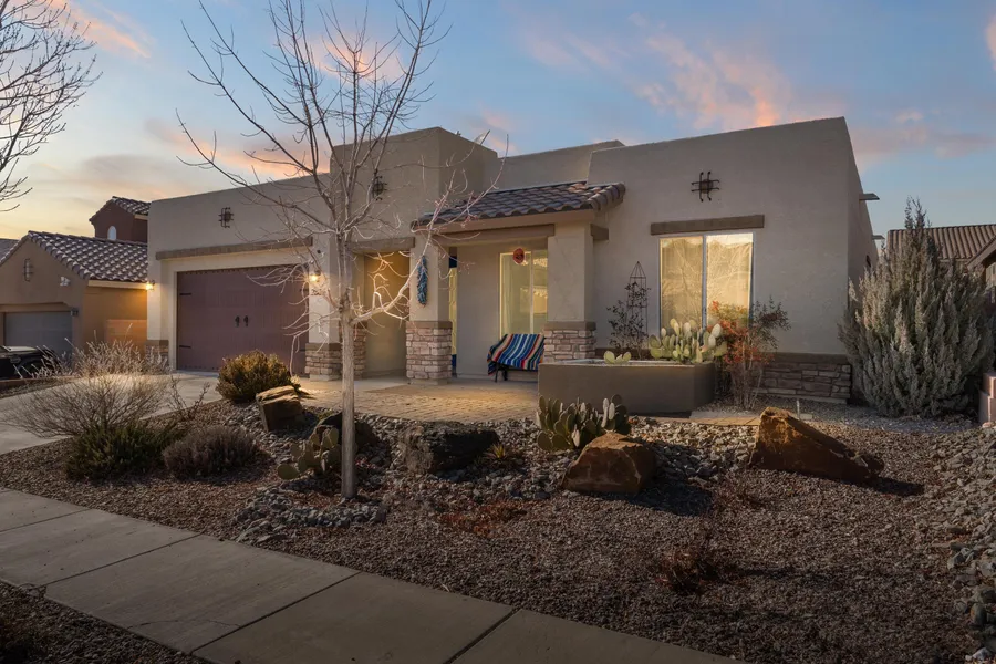 Experience luxury living in this beautiful 3-bedroom, 2.5 bath home featuring 9-foot ceilings, abundant natural light, and versatile bonus spaces. Nestled in the highly desirable Cabezon community, this home is just under three miles from Intel, close to Cottonwood Mall and offers quick access to local shopping, dining, and recreational areas. The highlights of this home include a large open concept kitchen, dining and main living room with two multi-functional bonus rooms, a spectacular outdoor living area and a separate office space off of the kitchen, a space for all your needs. The stunning kitchen showcases stainless steel appliances, a huge kitchen island with seating and sleek granite countertops.