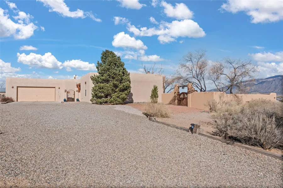 Incrediable Views from this updated SW custom home. Courtyard entry invites you into this gorgeous living room full of light and new tile. High ceilings, kiva fireplace and views of the mountains. Formal dining invites the views, kitchen w/custom cabinets, SS appleiances, easy access to service room and 2 car garage. Primary BR suite is separate, views and sitting area, garden style bath, 2 walk in closets. BR 2 and 3 share a full hall bath. East patio courtyard is spacious with kiva wood burning fireplace, patio dining area, room for garden and lawn area. The serenity, privacy and views make this property an amazing home.