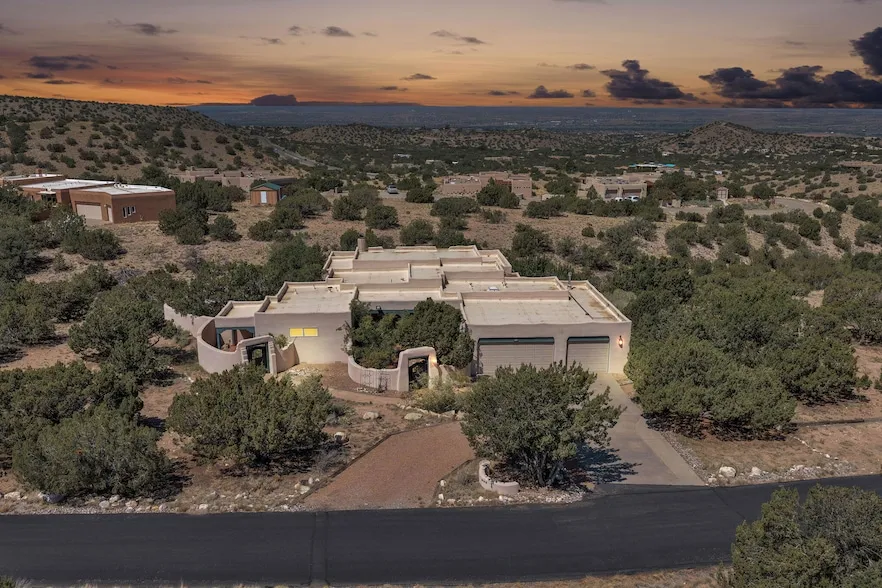 20 Puesta Del Sol, Placitas, NM 87043 is a stunning southwest-style home nestled on over 2 acres, offering breathtaking mountain views and the tranquil beauty that defines life in Placitas. With approximately 2,275 square feet, 3 bedrooms, 2 bathrooms, and a 3-car garage, this property perfectly combines comfort, space, and the timeless charm of New Mexico living.