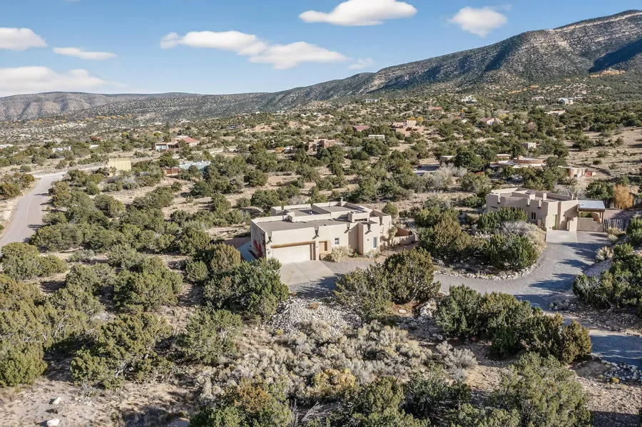 Welcome to serenity, starry skies, picturesque landscapes, inspiring sunrises and wild horses! Fantastic 2.72 acre property with a Main house and separate casita! The lovely casita is ideal for multi-generational living, studio space, separate home office space, etc. Expansive Sandia Mountain views from both houses! Main house features include a gas log Kiva fireplace, a welcoming front courtyard, a spacious backyard portal which is perfect for views and al fresco entertaining, Latilla fencing an oversized garage with incredible storage, solar tube skylights, a spacious primary suite with portal access and well kept classic southwesternlandscaping!