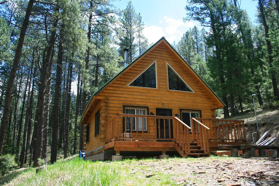 In and amongst approximately 6 acres of Ponderosa Pines, Douglas Fir, White Fir and Aspens and at an elevation of approximately 8000 ft.. sits this 2 bedroom, 1 bath log cabin with T&G Ponderosa Pine cathedral ceiling accentuated by the Ponderosa Pine interior walls, luxury vinyl floors. Ponderosa Pine steps and railing lead up to the loft bedroom. Cant help but feel overly cozy when you enter the bottom bedroom with large beams with T&G Ponderosa Pine, ceiling. All weather decking on the deck. How about no monthly electrical bills due to the newly revamped solar system, (solar panels are not new). How about no monthly water bills due to a generator back up system that runs the water well and if need be, electrify the cabin. How about being bounded by National Forest on the North side of the 6 acres where you will run into elk, deer, bear, turkey and grouse. An evening chill, no problem, just throw in a couple of pieces of wood into the wood stove. How about walking East where within a 10 minute walk you hit National Forest again and also run into one of the best fly fishing streams in NM called the Rio Del Las Vacas River and where you will Rainbow and Cutthroat Trout. All the furniture, beds, appliances stay with the cabin.