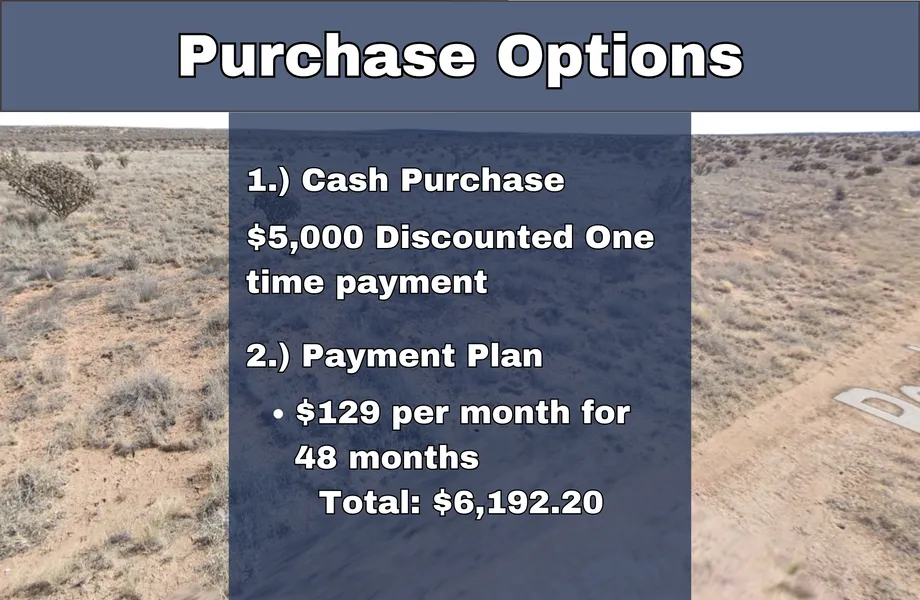 Your land-buying journey begins with a simple down payment of $129. With a term length of 48 months, you have the flexibility to choose your preferred due date each month for your payments. We aim to make the process of buying your dream property quick, stress-free, and easy.