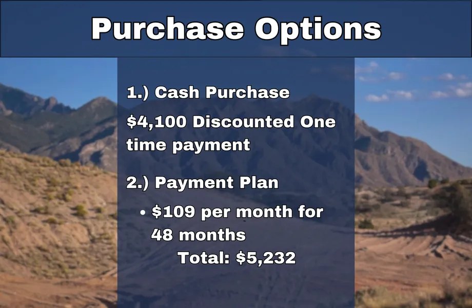 Your land-buying journey begins with a simple down payment of $109. With a term length of 48 months, you have the flexibility to choose your preferred due date each month for your payments. We aim to make the process of buying your dream property quick, stress-free, and easy.