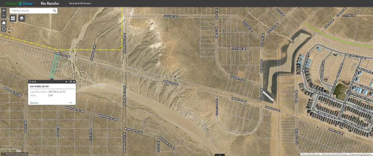Investment land near a growing area of Rio Rancho. Just minutes from Los Diamantes and Rust Hospital, this is a great opportunity for future development.