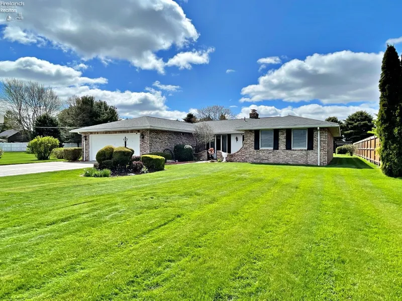 Spectacular BRICK Ranch on a Double Lot! Roomy 1 +/- acre with beautiful mature landscaping, 3 BD, 2 BA, attached finished two-car garage, Lakota School District. Meticulously maintained, one owner home features a bright and sunny great room with a brick heart woodburning fireplace. Wonderful layout, spacious kitchen with ample cupboard and counter space, freshly repainted, replacement windows, and storage shed.