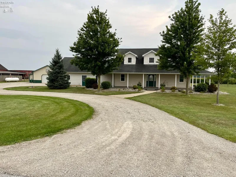 Welcome home to this custom-built country home situated on nearly 2 acres! Enjoy special times on your wrap around porch and nice sized yard. Modern kitchen with quartz countertops and maple cabinetry. First floor laundry adjacent to the kitchen. Neutral decor throughout and cathedral ceilings in formal living room. Two spacious bedrooms upstairs and master suite on first floor which includes a bathroom with heated floors. Full, dry basement with heated floor, mostly finished with an extra half bath. Attached garage has finished walls and heated floors with drain; also includes one oversized garage door. The 48x28 pole barn features a 900 sq ft apartment, workshop and added lean too garage. Workshop is set up for woodworking as it includes PVC pipes for dust collection. Dedicated 200-amp service in both house and pole barn. Additional utility shed that can be arranged for more parking.