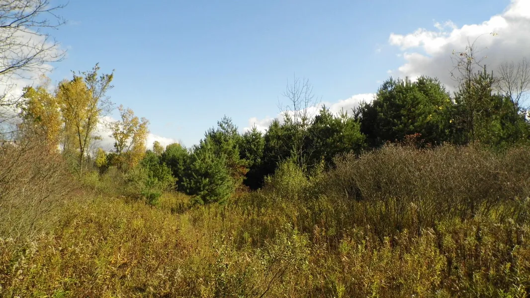 Approximately 80 rolling partially wooded acres on a paved road for easy access. Property is a good combination of brushy fields and woods, makes for great whitetail bedding cover. Lots of runways twisting and turning thru the scattered woods and brush. Deer seemed to like both thick cover and edges, and this property has plenty of both.