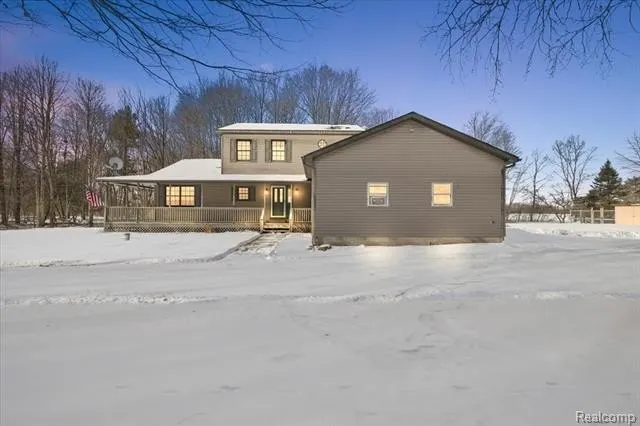 Set on 10 secluded, partially wooded acres, this updated colonial offers privacy, modern comfort, and an exceptional outdoor lifestyle. A wraparound porch welcomes you into a light-filled home where a two-story foyer creates a great first impression. The inviting living room features an electric fireplace with mantle, large windows overlooking the property, and bar seating at the pass-through to the kitchen — perfect for both everyday living and entertaining. The updated kitchen features stylish two-tone cabinetry, stainless steel appliances, quartz countertops, modern fixtures, and a breakfast nook. A formal dining room with doors leading to the backyard provides an ideal setting for gatherings. The spacious first-floor primary suite offers convenience and comfort, complete with a walk-in closet and ensuite bathroom featuring a double-sink vanity and laundry. A powder room and mud room ...