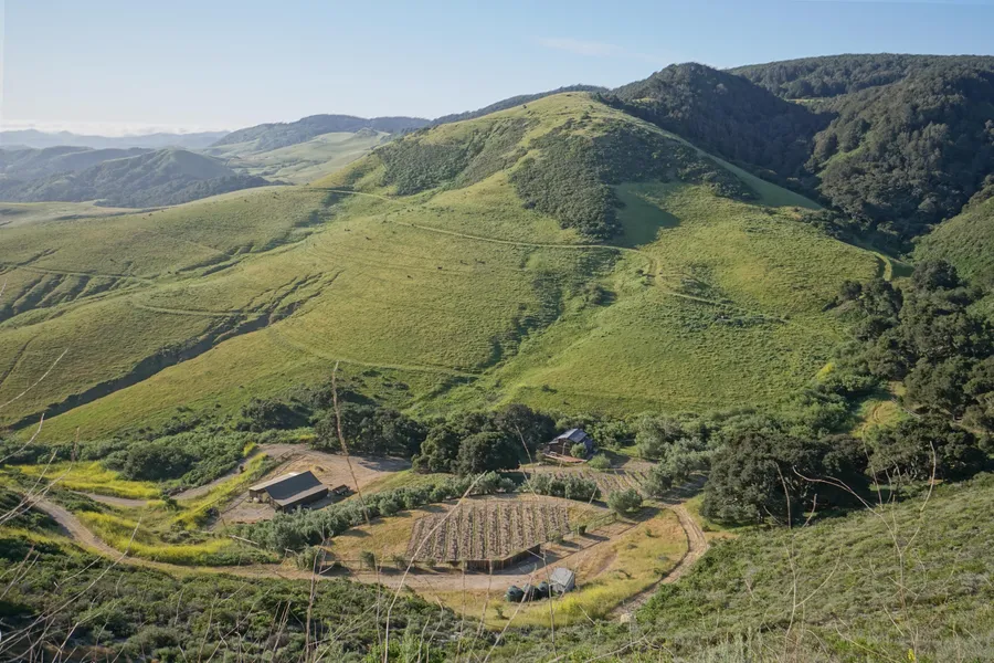 971 Acre A-OK La Hoya Springs Ranch. Absolute privacy, peace and quiet await you on this diverse property. A long oak canopied driveway leads to vast open hillsides, Level Meadows and Oak Forests. A recreational paradise with abundant water from its famous springs. The focal point is a family compound with a small rustic lodge and vineyard, with winemaking and entertainment building above a rock lined wine cave in a wooded setting beside a spring fed pond.