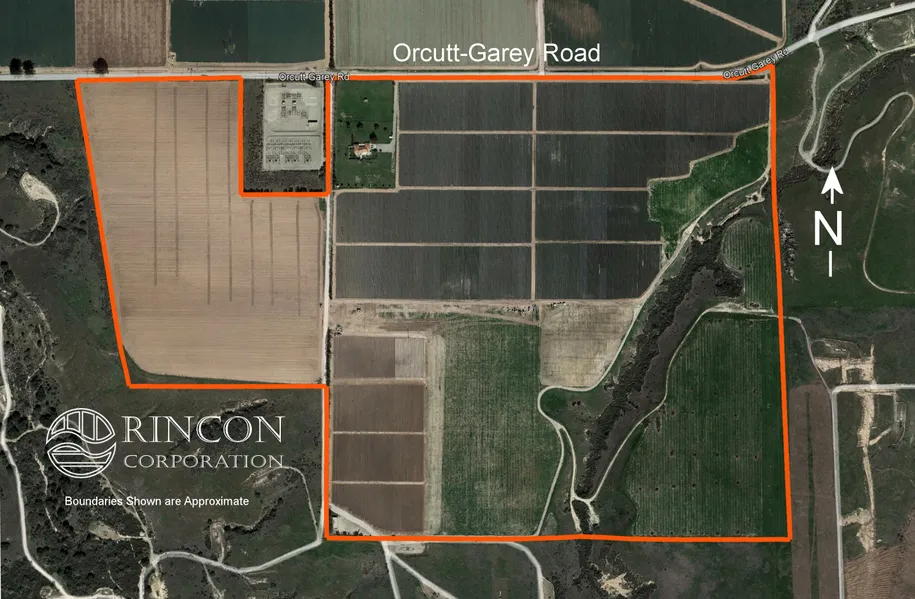 The Property consists of a total of 206.4 acres, and is comprised of three Assessors Parcels, including two legal parcels. There is approximately 160 acres that are leased for farming operations and about five acres that contain the residential rental. The balance of the acreage is a non-productive drainage area. An un-named County road runs south from the Orcutt-Garey Road through and bisects the Property. This road is also used by a neighboring parcel.