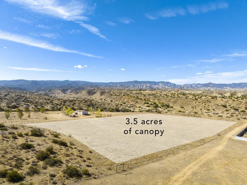 Castro Canyon Farms sits on 20.5 acres just minutes from the town of Cuyama. There are 3.5 acres of cannabis cultivation approved through a land use permit (LUP). The cultivation site rests on a bench overlooking Castro Canyon and Cuyama. The site is usable for planting into native soil and also approved for greenhouse cultivation. A new 25 gpm pump has been installed to service the garden. There is an approved structure for worker housing onsite. This is a fantastic and affordable site for cultivators establishing cannabis production in Santa Barbara county.