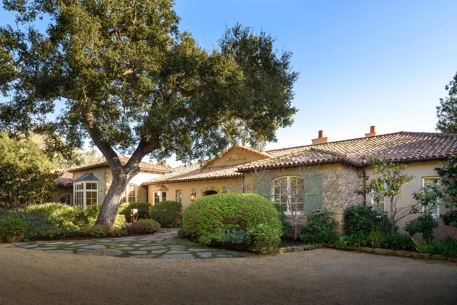 Impeccably designed and beautifully maintained single-level home situated in the heart of Montecito behind gates at the end of a private lane. Versatile floorplan includes spacious master with dual baths and extra large closets plus 3 additional bedroom suites. All rooms are perfectly scaled with high ceilings and pocket doors which allow for either a ''great room'' with den, living room and formal dining room, or ability to privatize and separate those spaces. True cooks kitchen with both walk-in pantry plus butler's pantry and family room. Encircled by south facing, floor-to-ceiling doors and windows, there is natural light throughout the home. All public rooms and master open to patios where one can enjoy the quiet sounds of nature. Extremely private and secure, this home is the epitome of the Montecito.