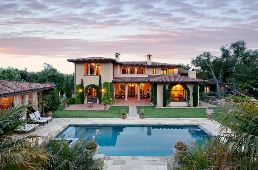SHOWING JULY 15th.. Tenant Occupied - see private remarks. Quality designer craftsmanship and tranquility throughout, this gated Mediterranean estate built by Becker Construction and designed by Robert Senn in 2005 on 2 landscaped acres showcase a waterscape and outdoor living with mountain and ocean views. In MUS district, approx 7000 sf offers 5 bedrooms en suite, gourmet kitchen, family room, Living room, dining room, large office that could be media room, beautiful pool and pool cabana, covered patio, bbq, putting green, Italian limestone columns, limestone and walnut floors, French fireplaces, vaulted ceilings. With formal or casual entertaining, you can enjoy the Montecito lifestyle close to shops, Rosewood Hotel, and hiking trails.