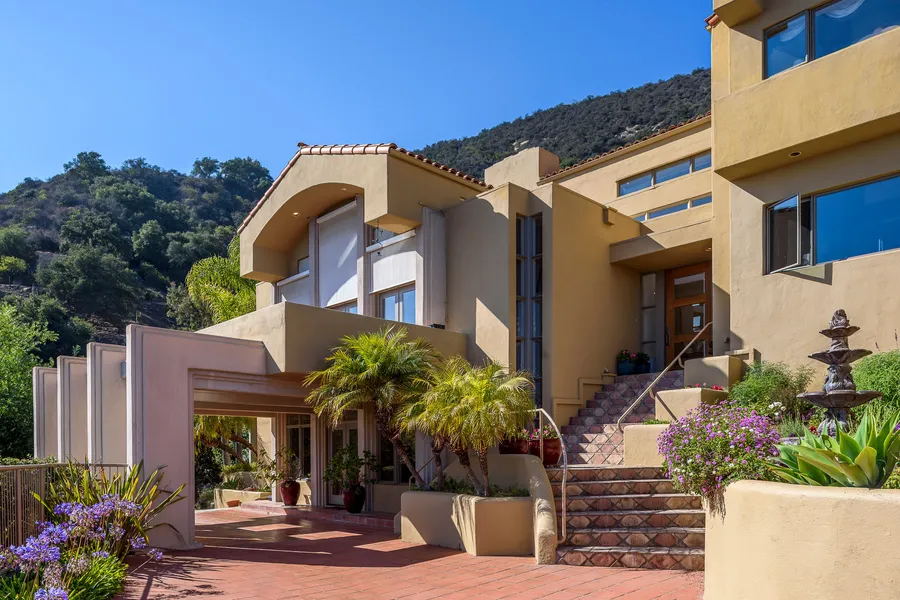 As featured in Mansion Global, this custom gated property offers resort like amenities and expansive ocean and mountain views. With Contemporary Mediterranean-Style architecture the main residence is filled with an abundance of natural light, offers 6 bedrooms and 8 baths on three levels. This serene resort-like estate offers 2 sumptuous master suites and 4 additional spacious bedrooms, primary bedroom and family room with fireplace, living room with fireplace and wet bar, multiple view balconies, a 600 bottle wine room, separate library/office, exercise room and an additional bonus room perfectly suited as an art, entertainment/music or yoga room. Additional amenities include a 1 bedroom/1 bath guest house/casita (a total of 7 generous bedrooms) inviting, private pool and spa, 4 zone air conditioning plus a 4 car attached garage, custom landscaping and a 6000 gallon water tank on approx...