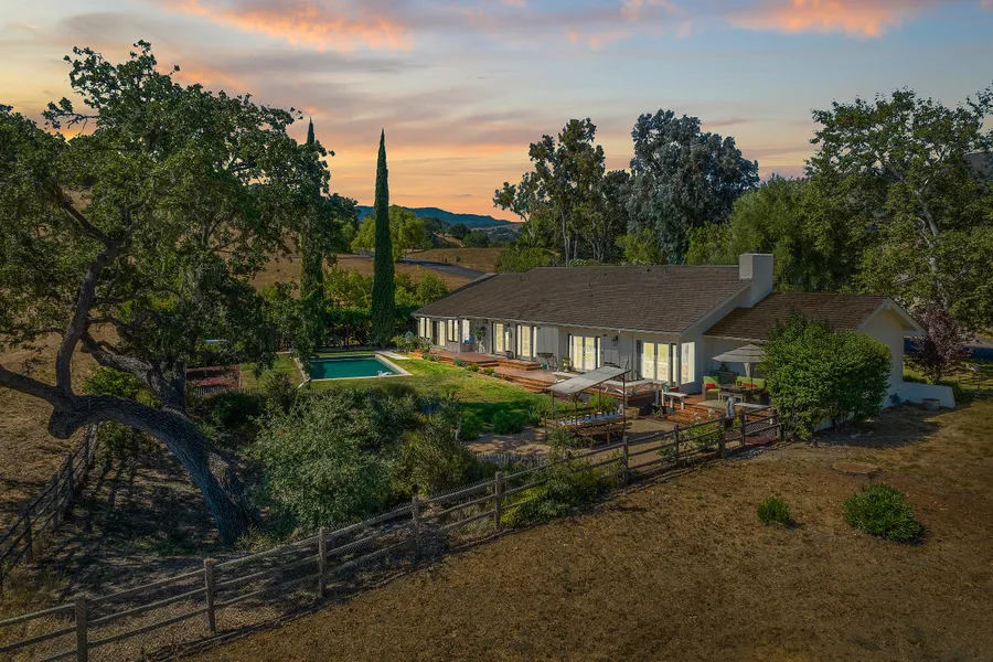 The Alisal Ranch is 10,000 acres of beauty. There are 63 homes and a first class resort with a private 18 hole golf course. There are 63 homes all single level, all with vaulted ceilings on large lots. This home features a gorgeous pool and views from every window looking out to Old Oaks and mountain, also a little peak of the city of Solvang lights.