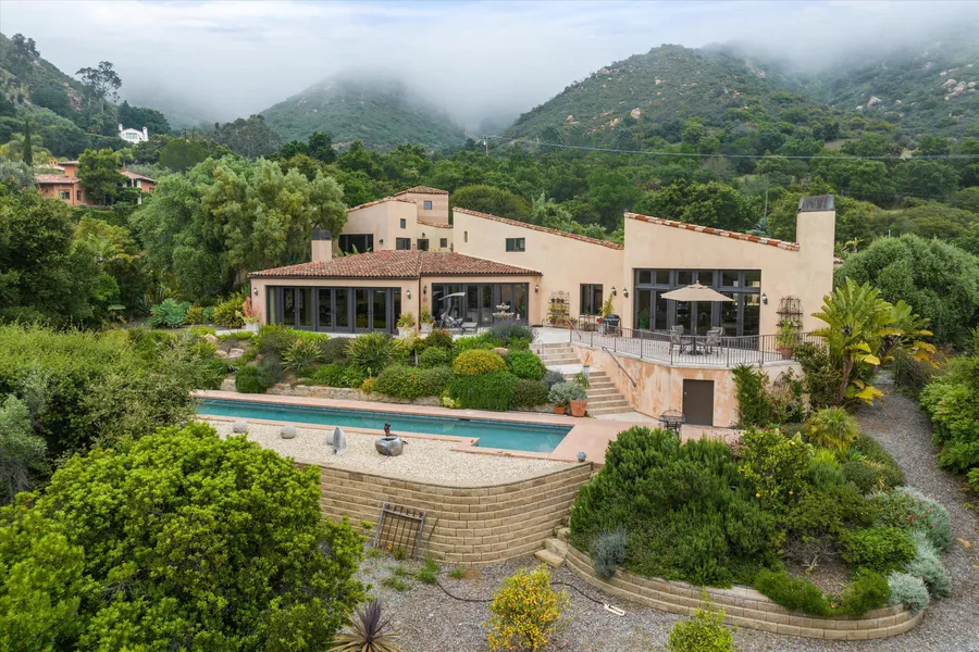 Ocean Views! Unrivaled, breathtaking panorama from a romantic Montecito Mediterranean retreat on a private lane. An architect's dream home in a serene 5-acre paradise with floor to ceiling glass doors and windows; many details added by current homeowners to further enhance numerous features including a Louis XV fireplace mantle. All 3 bedrooms and living areas connect to the outdoors with open or private patios. An airy, open kitchen, top brand appliances and adjacent family room and fireplace, seamlessly blend with the entertainment view terrace. Abundant storage throughout, and in the 3-car garage plus wine room. Bask in a peaceful resort-like setting with a 55-foot solar heated lap pool, lush gardens with fruit trees, library, sauna, and room to add a vineyard.