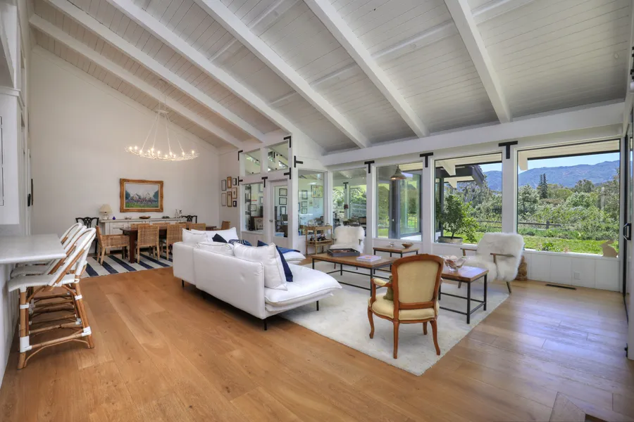 Step into this immaculately updated home and take in some of the most stunning mountain and valley views the Alisal has to offer. This beautiful 3 bedroom, 3 bathroom residence has been remodeled from floor to ceiling. A completely renovated eat-in chef's kitchen includes new cabinetry, quartz honed countertops, state of the art appliances along with an imported Miele 8 burner stove top, three ovens, and refrigerator drawers in the kitchen bar. Adjacent to the kitchen and dining room is a spectacular 3000 bottle wine room....truly an entertainer's delight. The open living space of this home is filled with natural light. Brand new wide plank French oak flooring throughout, new lighting and fixtures, new paint and custom finishes and window treatments are just a few of the upgrades to the interior of the home. The living room has walls of windows that bring the outdoors inside. The sunken den off the living room has wall speakers, fireplace and a cozy vibe...perfect spot to read a book, listen to music or enjoy a cup of coffee. The primary bedroom has incredible mountain views, an ensuite bathroom, two separate walk in closets, and a beautiful fireplace with sitting area and access to a private garden with room for a hot tub. The spacious and bright guest bedroom wing has its own bathroom that opens out to an enclosed garden with fountain. Alisal is a private gated comunity of 64 homes.